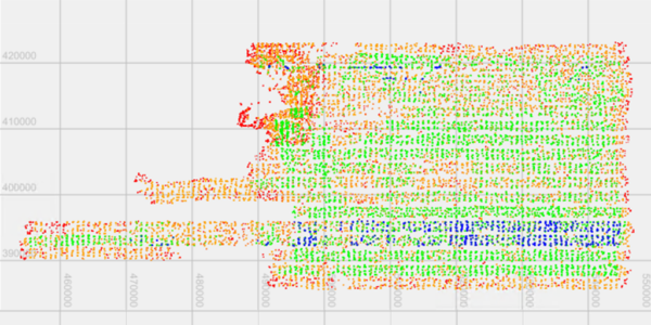 Due to the project’s rural application, the flight was conducted with a 60% overlap and 40% side-lap to rapidly generate a Digital Surface Model (DSM), with sub-pixel accuracy, using the MATCH-T DSM module in Inpho. In city modeling or urban mapping projects, or in areas with high buildings, as well as high-overlapping imagery projects, MATCH-3DX is recommended.